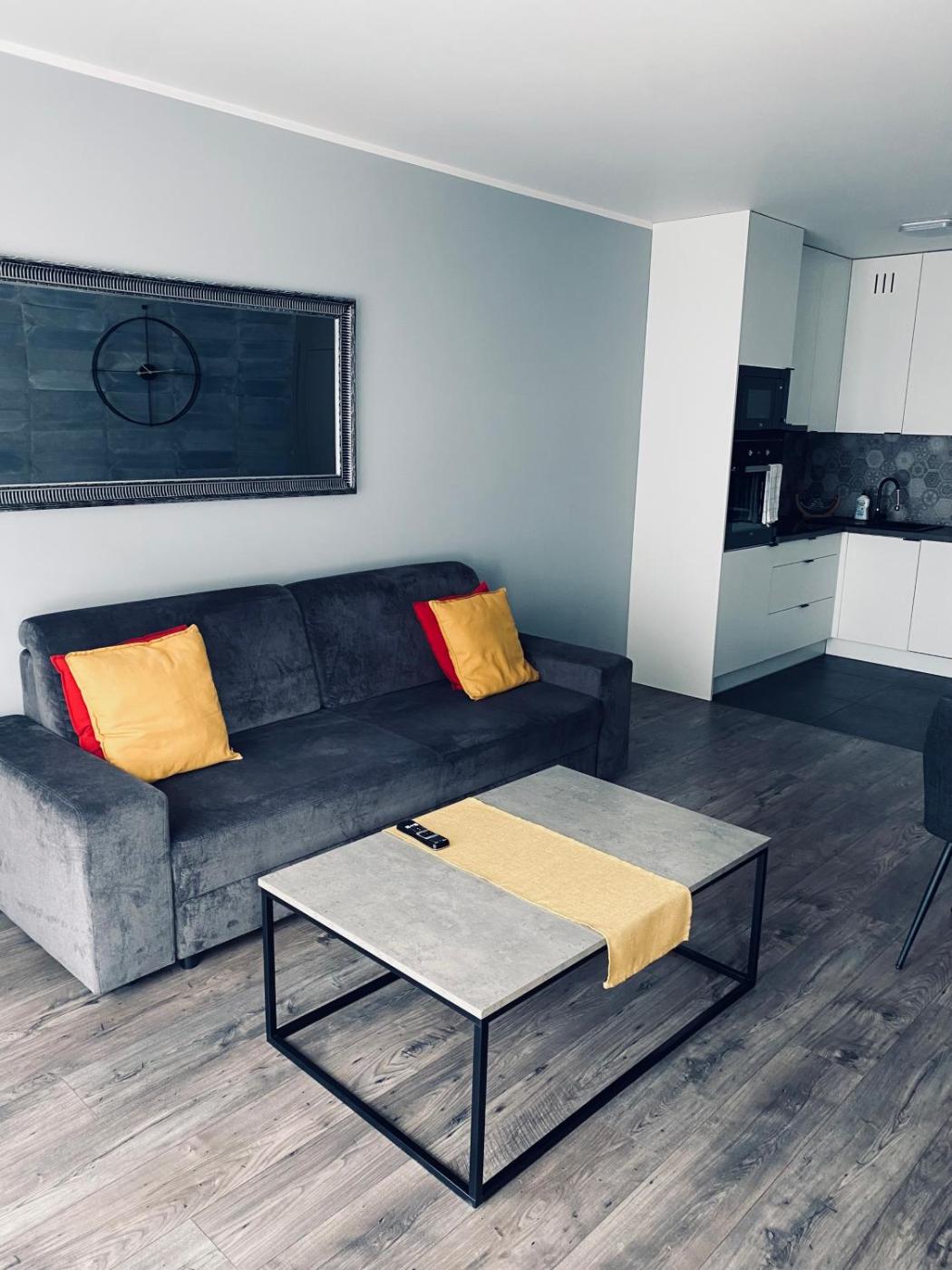 Apartament z 1 sypialnią. Featuring a private entrance, this apartment comprises 1 living room, 1 separate bedroom and 1 bathroom with a shower and a hairdryer. Meals can be prepared in the kitchen, which comes with a stovetop, a refrigerator, a dishwasher and kitchenware. This apartment features soundproof walls, flat-screen TV with cable channels, city views, as well as fruit for guests. The unit offers 2 beds. Apartament - 4 osobowy. Powierzchnia pokoju ok.: 45 mkw.